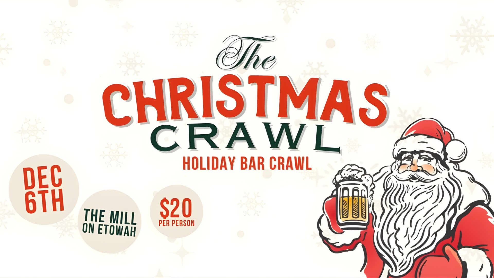 The Christmas Crawl is The Mill on Etowah’s signature holiday bar crawl filled with themed pop-ups, over-the-top decor, specialty drinks, and all the Christmas cheer you can handle. Whether you’re rocking an ugly sweater or sipping something merry, this event is your one-stop shop for holiday fun.