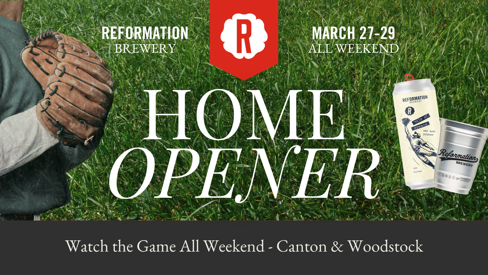 We’re showing the Home Opener all weekend long ⚾ Watch from the big screen in the Woodstock backyard or on the TVs in Canton, and celebrate with tin cups and Pils of Dreams at all locations.
